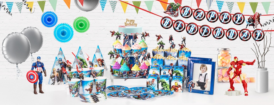 5.ปาร์ตี้ธีมเวนเจอร์ส: อเวนเจอร์ส หรือที่รู้จักในชื่อซุปเปอร์ฮีโร่ เป็นภาพยนตร์แอนิเมชั่นที่ร้อนแรงที่สุดในปัจจุบัน หากคุณต้องการให้ปาร์ตี้ของเด็กๆ น่าประทับใจและแปลกใหม่ยิ่งขึ้น ธีม เวนเจอร์ส คือตัวเลือกที่ถูกต้องที่สุด ซุปเปอร์ฮีโร่ที่แข็งแกร่งถูกรวมไว้ในหมวก กล่องของขวัญ กล่องข้าวโพด หน้ากาก และแม้กระทั่งสายสุขสันต์วันเกิด...เป็นต้น จะเพิ่มความประทับใจให้กับงานเลี้ยง